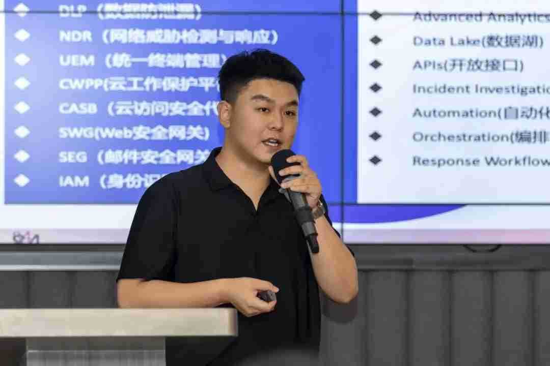 最后,,,山石网科售前工程师郑翔天就以XDR云网边端构建全域融合的安全运营新防线主题进行了分享。。。。他深入剖析了当前网络安全形势下,,企业面临的挑战和需求,,,,详细介绍了山石网科XDR解决方案的核心优势,,,,包括多数据源管理、、、、多视角安全事件呈现、、、以及自动化协同响应等,,,为与会者展示了山石网科在安全领域的创新能力和专业服务。。。